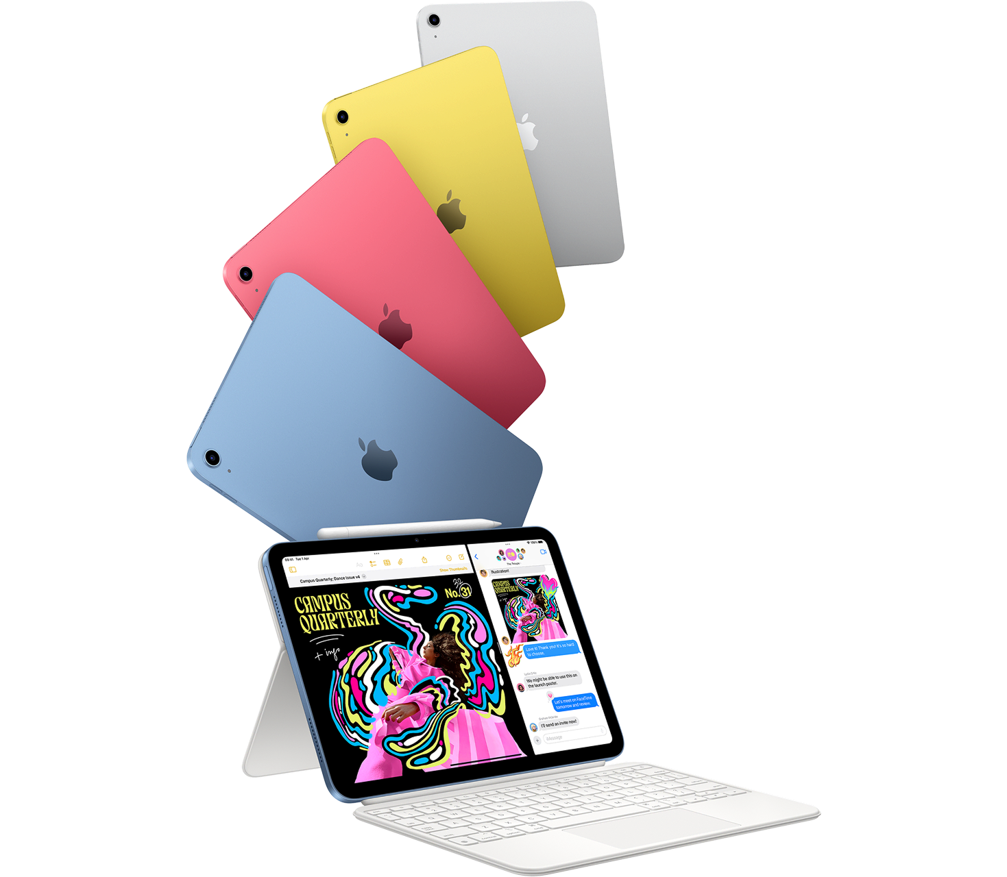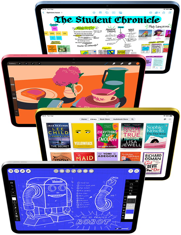 Работайте в режиме многозадачности, делитесь проектами и легко переключайтесь между приложениями благодаря мощному чипу А16 и батарее, которой хватит на весь день.