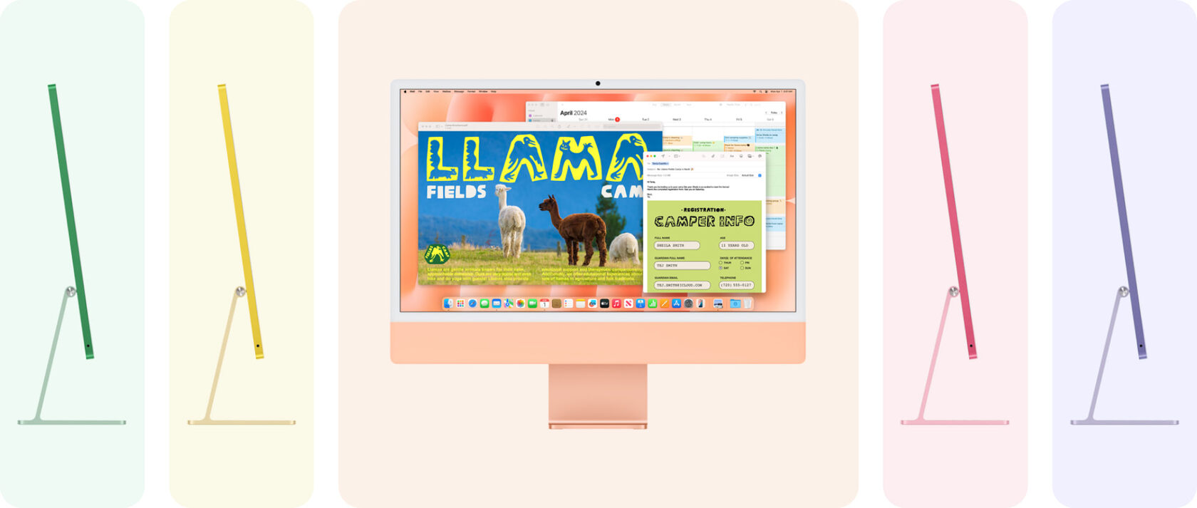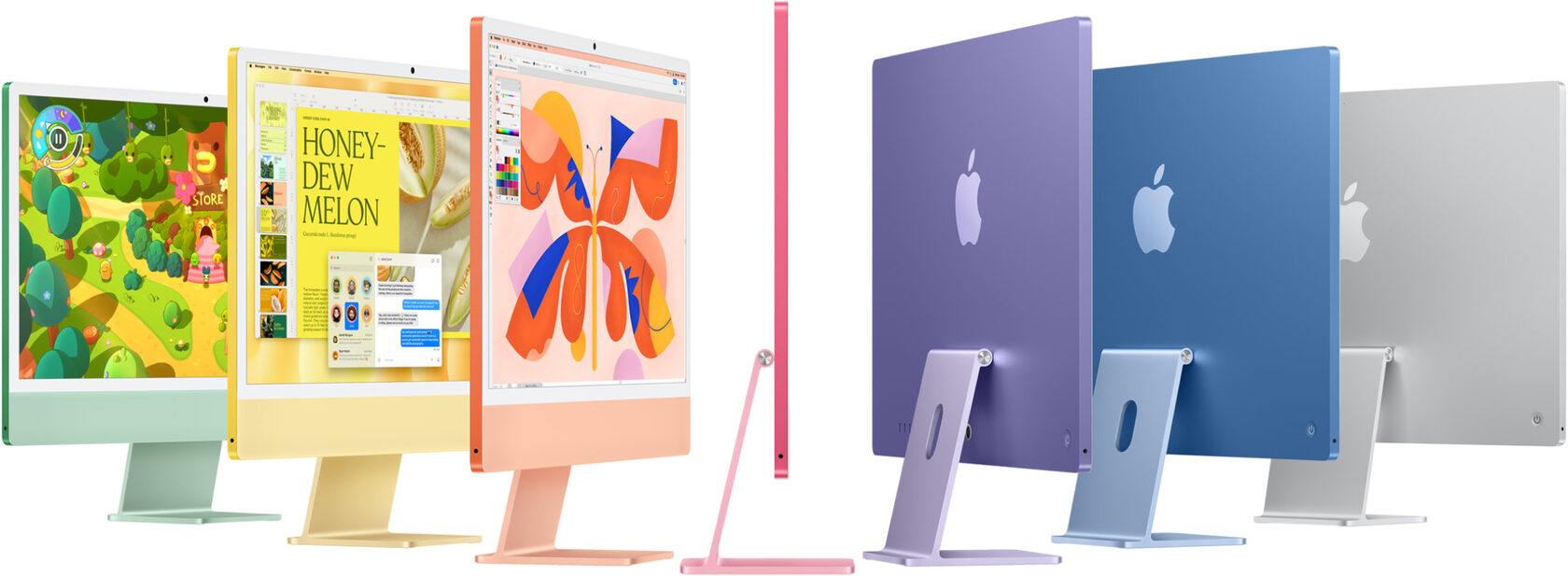 iMac 2024 — это не только функциональный моноблок, но и выразительная часть интерьера. Он сохраняет фирменный минимализм Apple и предлагается в нескольких цветах, позволяя легко вписаться в любое пространство — будь то домашний офис, рабочий кабинет или зона ресепшн. От сдержанного серебристого до ярких оттенков вроде розового — каждый найдёт вариант под свой стиль.