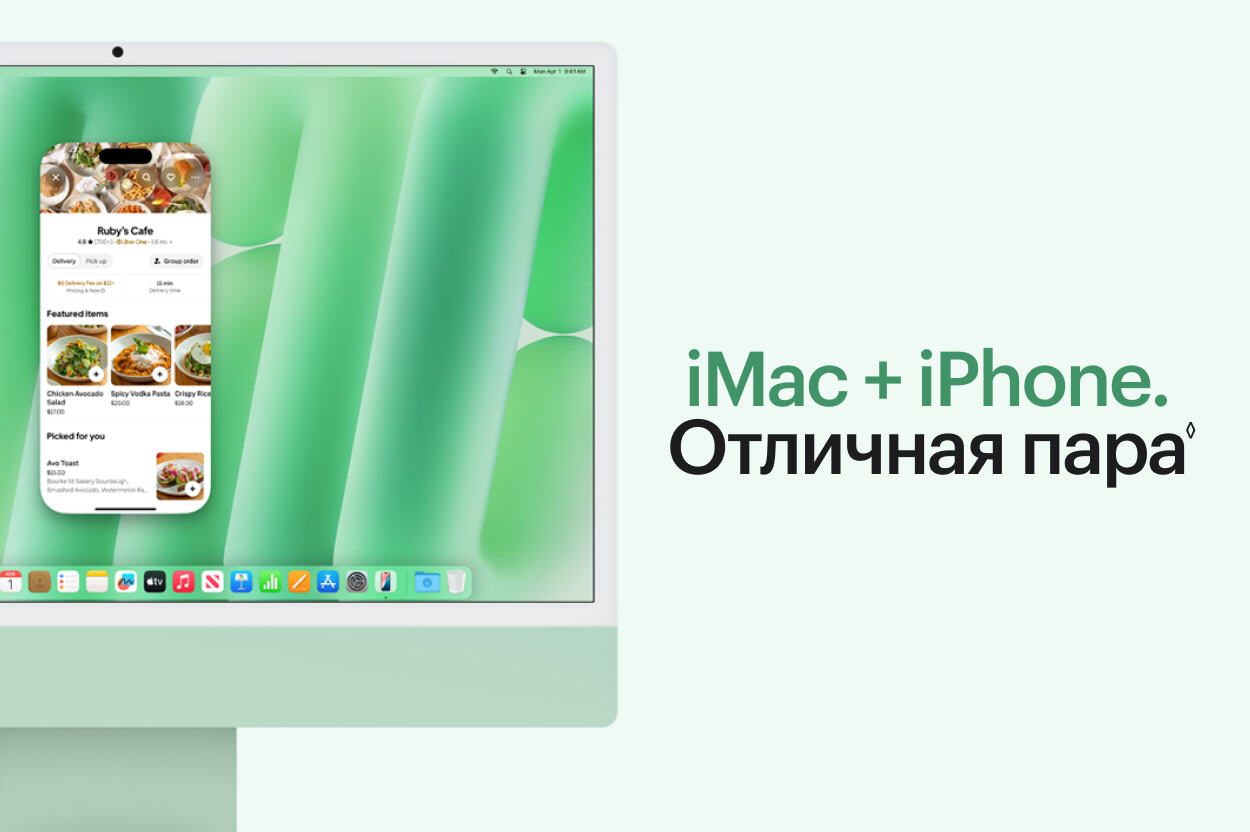 iMac 24" 2024 органично вписывается в экосистему Apple, обеспечивая бесшовную работу с iPhone, iPad и другими устройствами. AirDrop позволяет мгновенно передавать файлы, iPhone можно использовать прямо с экрана компьютера, а синхронизация данных — от буфера обмена до вкладок Safari и паролей — происходит автоматически. Это превращает iMac не просто в компьютер, а в полноценный центр управления цифровой средой.